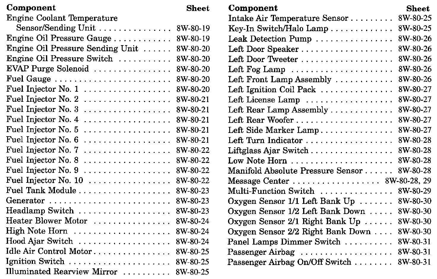 Connector Pin-outs Component Index (Part 2 Of 3):
