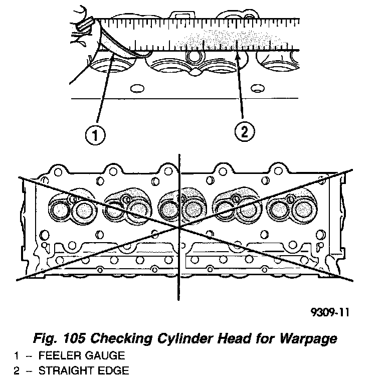 (3) Check cylinder head for flatness (Fig. 105).