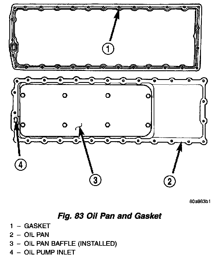 (1) Use a new pan gasket, if necessary (Fig. 83).