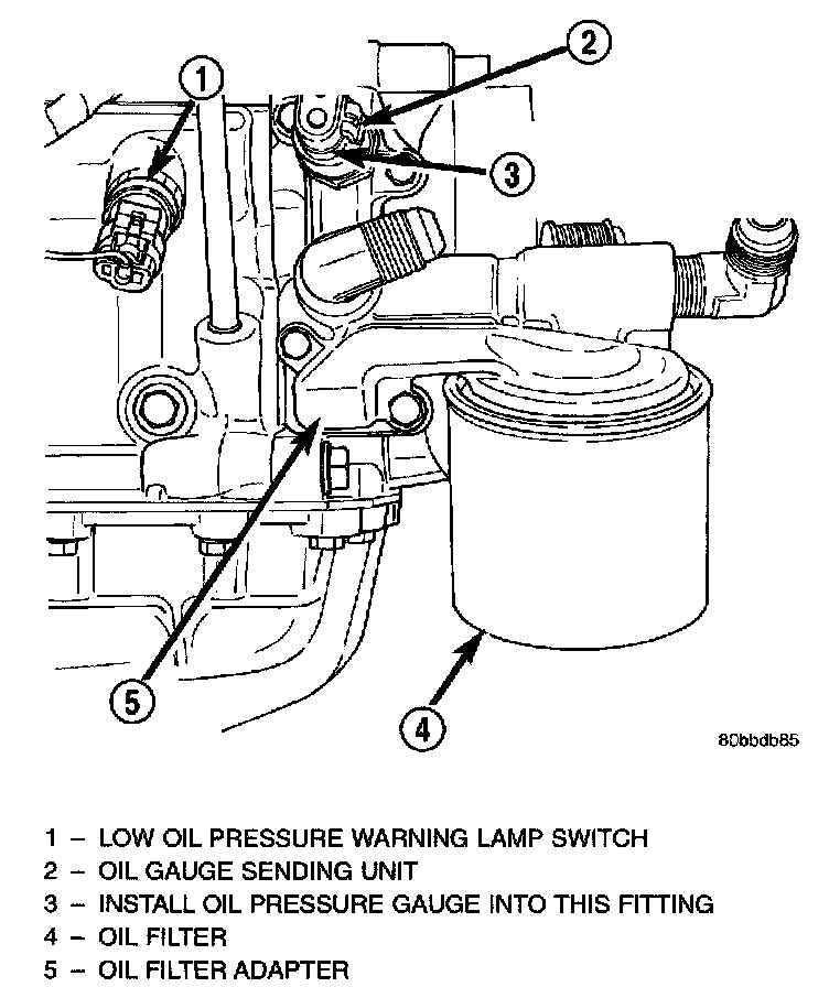 The engine low oil pressure warning lamp will illuminate when the ignition key is turned to the ON position. The lamp also illuminates when the engine oil pressure drops below a safe oil pressure level.Oil Sending Unit/Sensor: