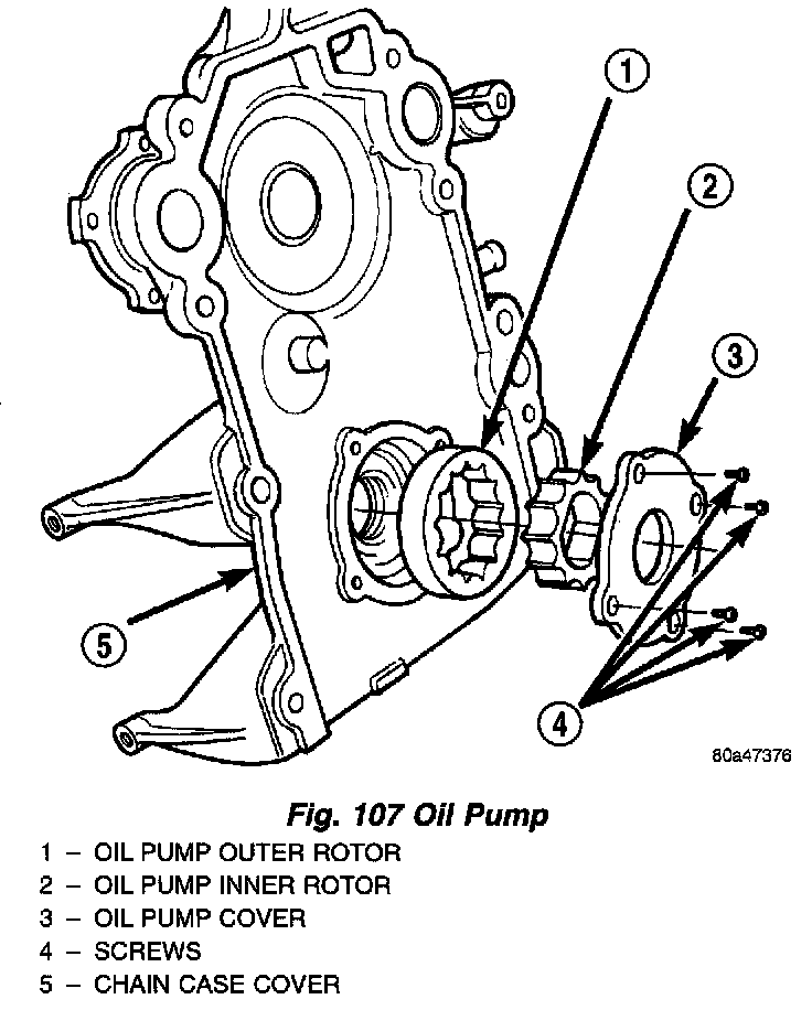 Clean all parts thoroughly. Mating surface of the chain case cover should be smooth. Replace pump cover if scratched or grooved.