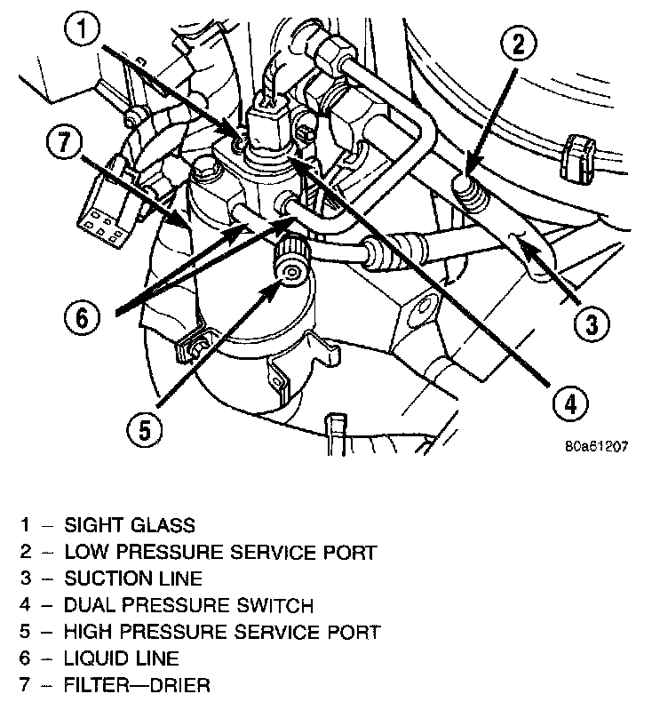 The Dual Pressure Cut-Off (DPCO) Switch monitors the refrigerant gas pressure in the A/C system. The DPCO is located on the filter-drier.