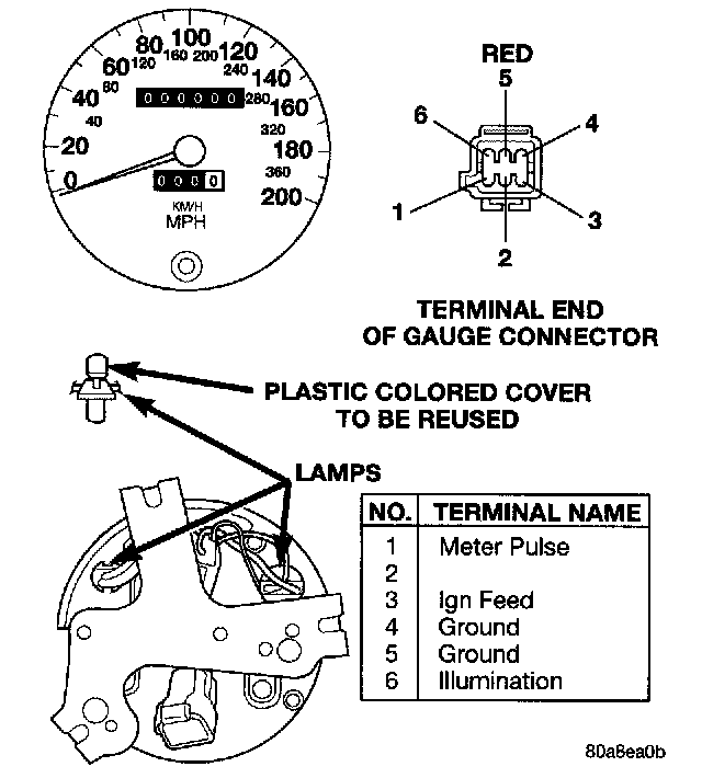 3. If battery voltage is OK, replace meter. If not OK, check ignition wiring.