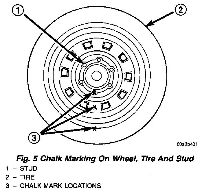 Usually radial run out can be reduced by relocating the wheel and tire on the wheel studs (See Method 1). If this does not reduce run out to an acceptable level, the tire can be rotated on the wheel. (See Method 2).