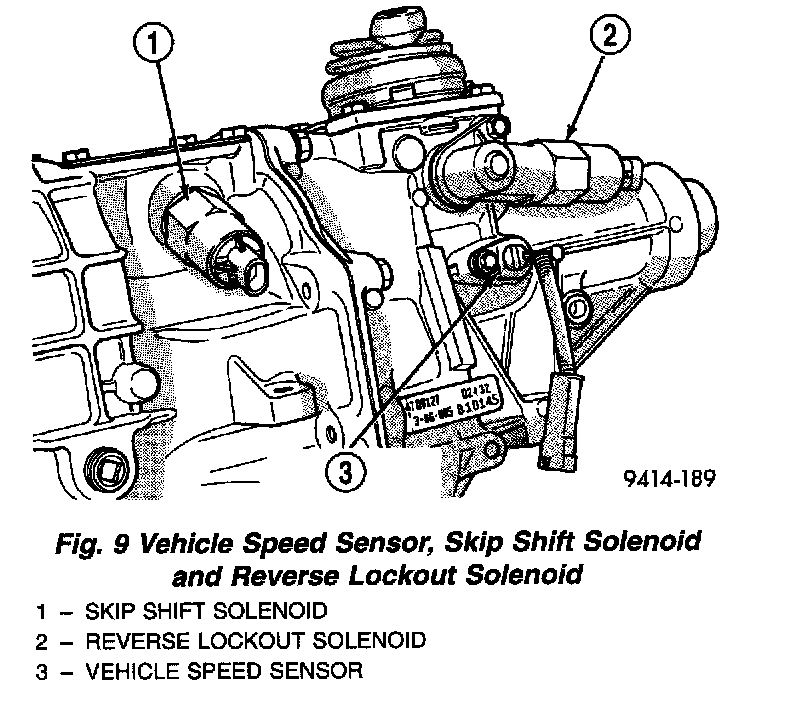 Fig. 9 Vehicle Speed Sensor, Skip Shift Solenoid And Reverse Lockout Solenoid: