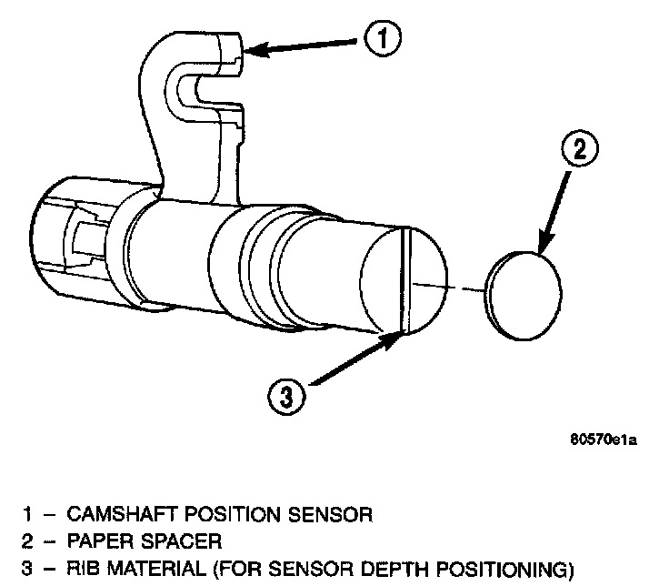 A thin plastic rib is molded into the face of the sensor to position the depth of sensor to the upper cam gear (sprocket). This rib can be found on both the new replacement sensors and sensors that were originally installed to the engine. The first time the engine has been operated, part of this rib may be sheared (ground) off. Depending on parts tolerances, some of the rib material may still be observed after removal. If the old sensor is to be used again you can use a paper spacer to set the proper gap for the sensor to cam drive gear spacing.
