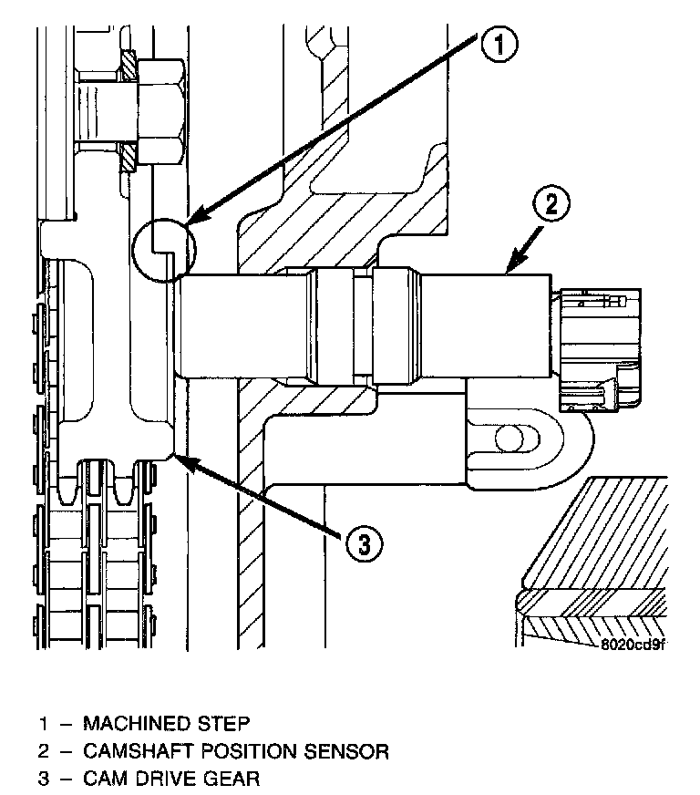 Before the sensor is installed, the cam gear may have to be rotated. This is to allow the high machined area on the gear to be directly in front of the sensor mounting hole opening on the timing gear cover.
