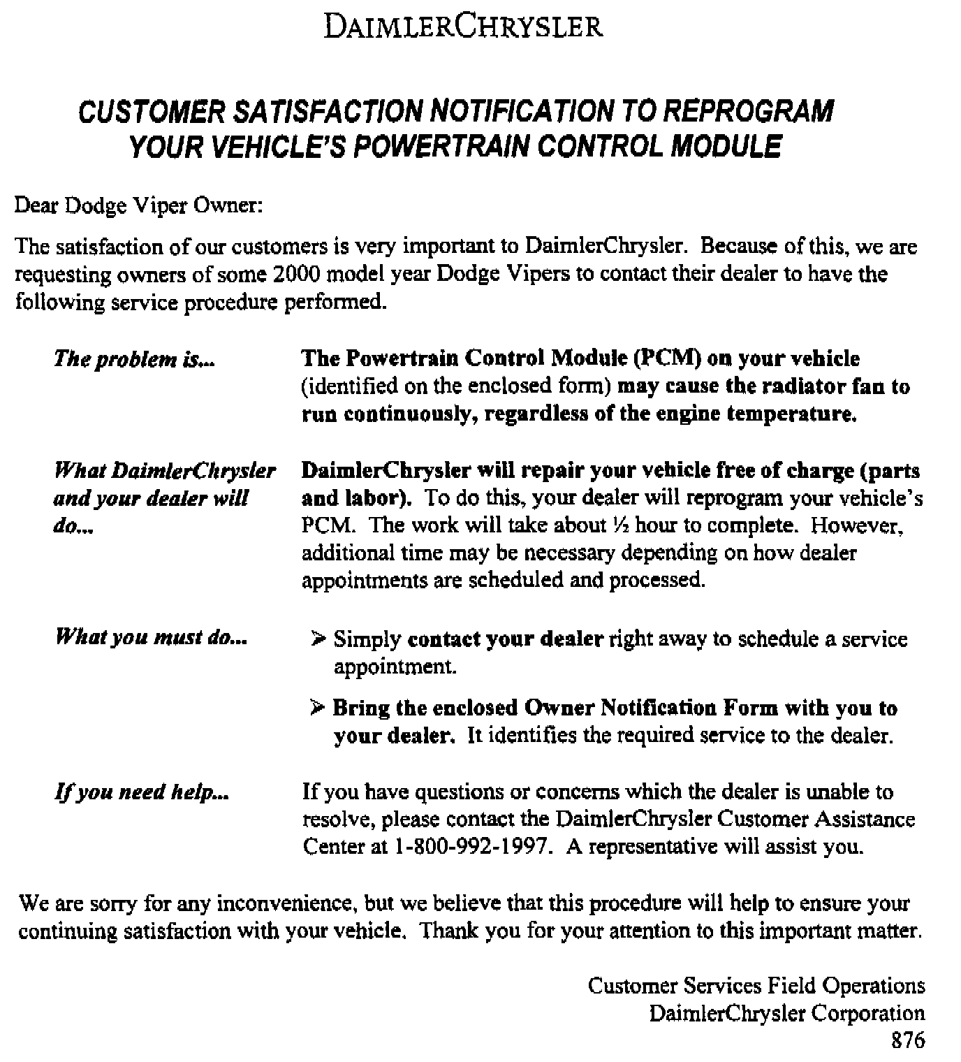 Recall - Cooling Fan Continuous Operation, PCM Update