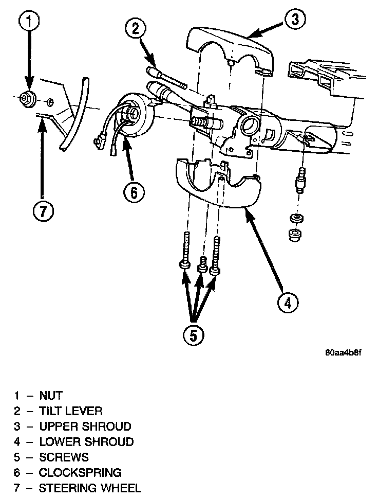 5. Remove the upper and lower steering column shrouds to gain access to the clockspring wiring
