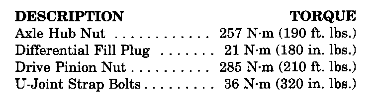 Tightening Specifications: