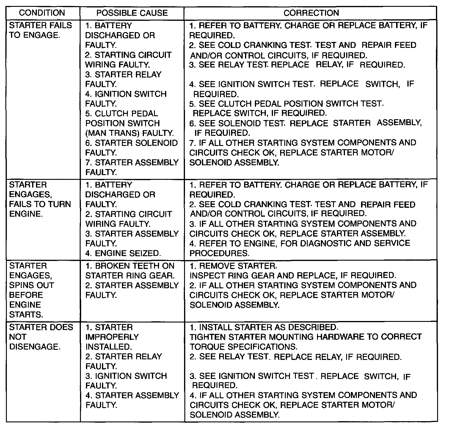 Before removing any unit from the starting system for repair or diagnosis, perform the following inspections: