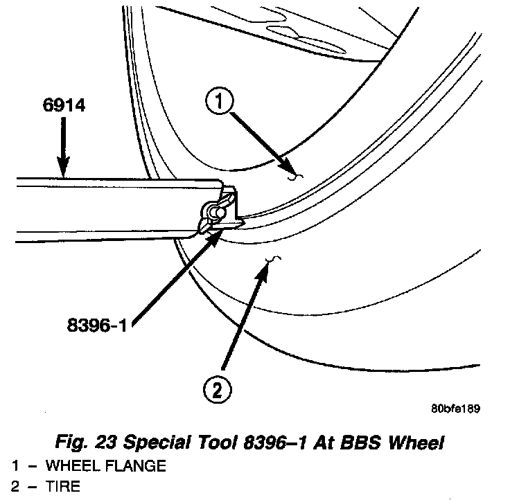 b. For BBS racing wheels, install the adapters placed attached to each end of the height gages against the very base of wheels as shown in the figures.