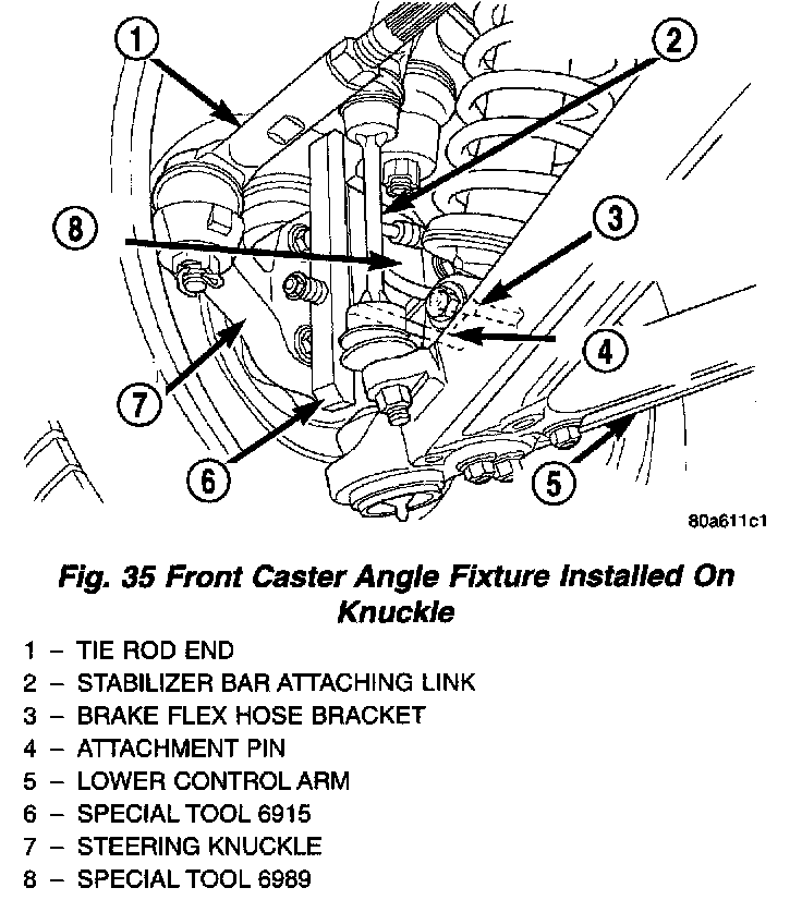 12. Adjust caster using the measurements viewed on the DRB III screen, and camber using the measurements viewed on the alignment equipment.