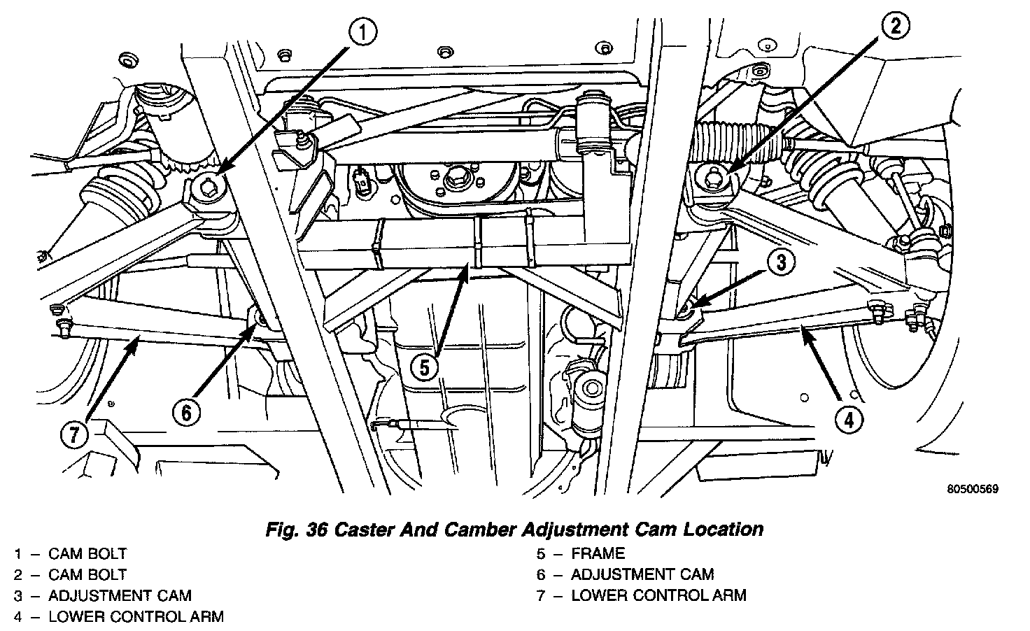 OVERVIEWThe camber and caster angles on this vehicle are adjustable using cams located on the lower control arm bushing pivot bolts. Correct camber and caster specifications are obtained by simultaneously rotating front and rear adjustment cams until lower control arm is correctly positioned.