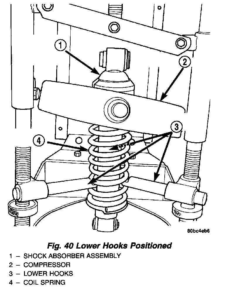 8. Slowly release the tension from the coil spring by backing off the compressor drive completely. As the tension is relieved, make sure the coil spring, upper and lower seats, and shock absorber align properly.