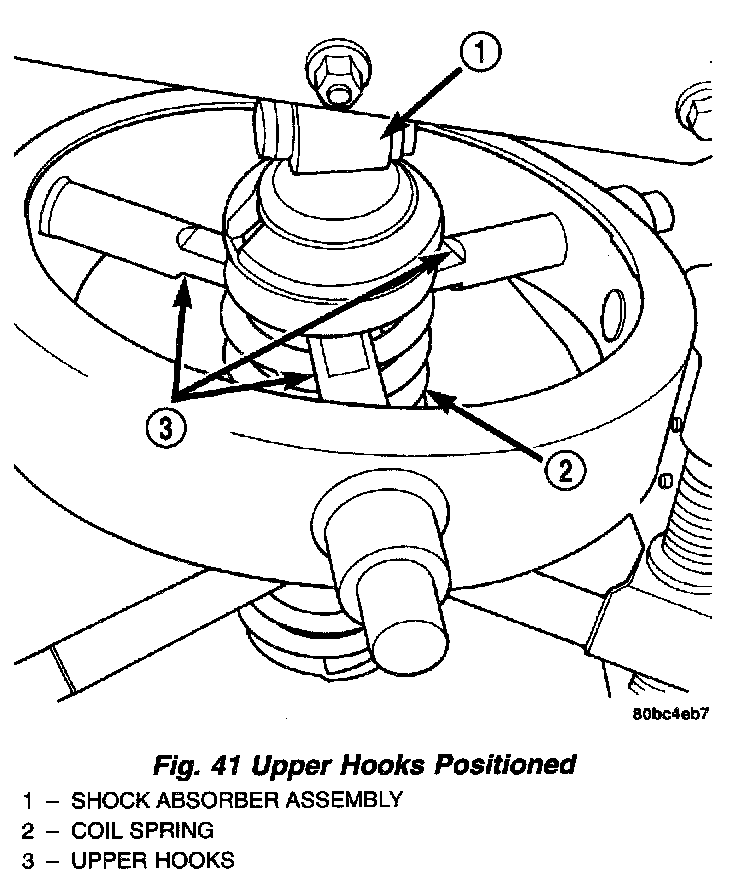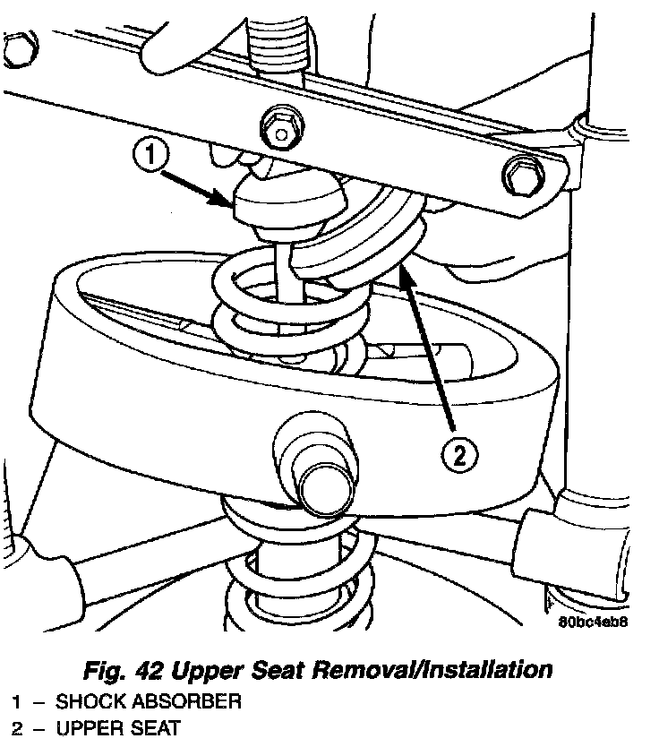 4. Remove the coil spring upper seat. To remove the upper seat, pull up on the shock absorber and remove the seat utilizing the cutout in its side.
