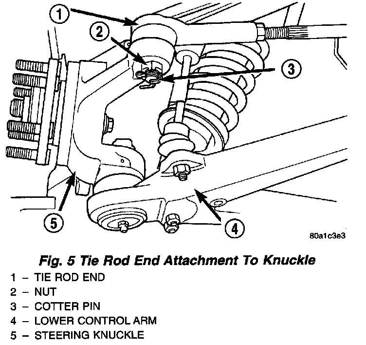7. Remove the cotter pin and attaching nut from the outer tie rod end.