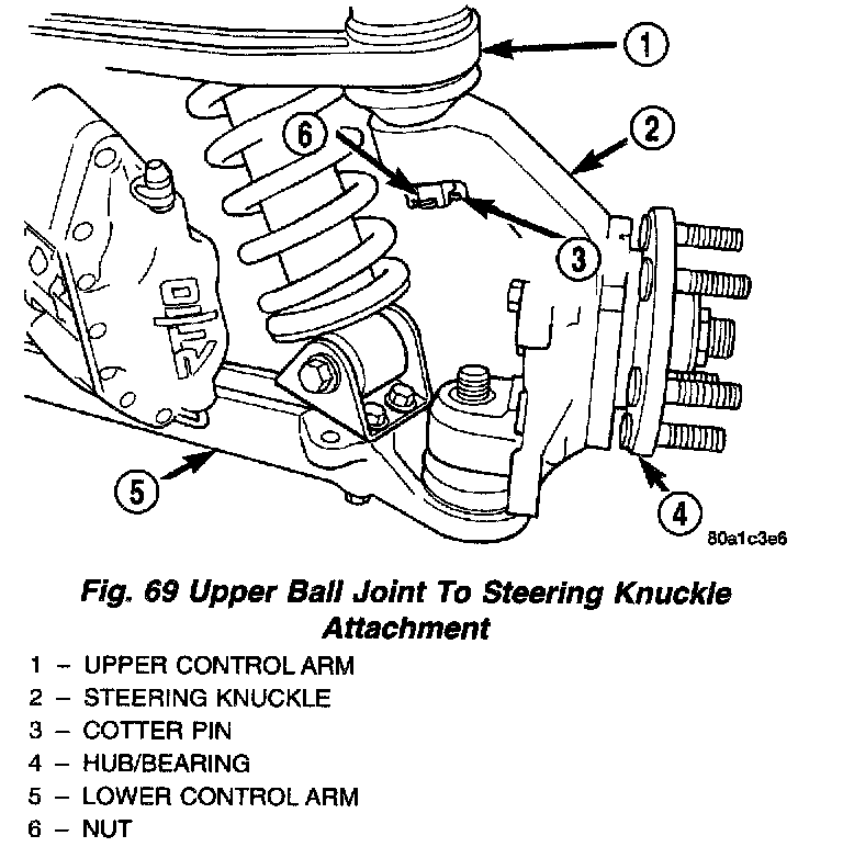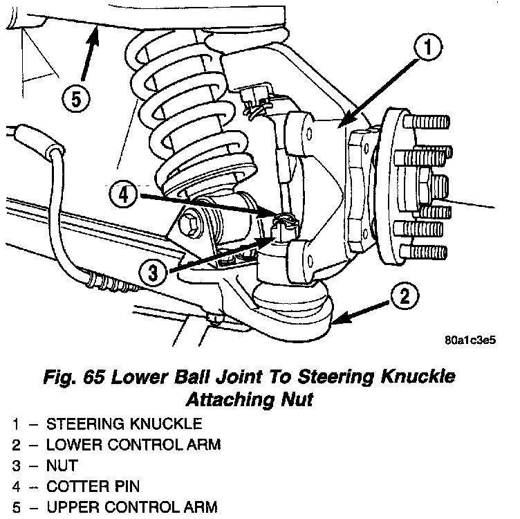 5. Install cotter pin through nut and stud of upper ball joint.