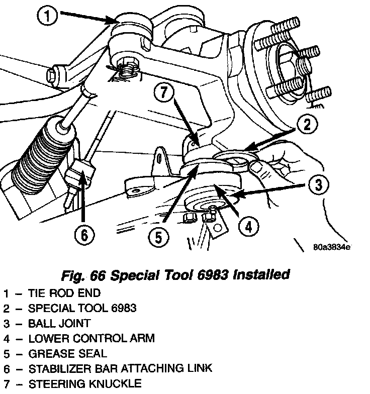 NOTE: When installing the Spacer, Special Tool 6983, between the grease seal and steering knuckle, it must be installed in the direction as shown.