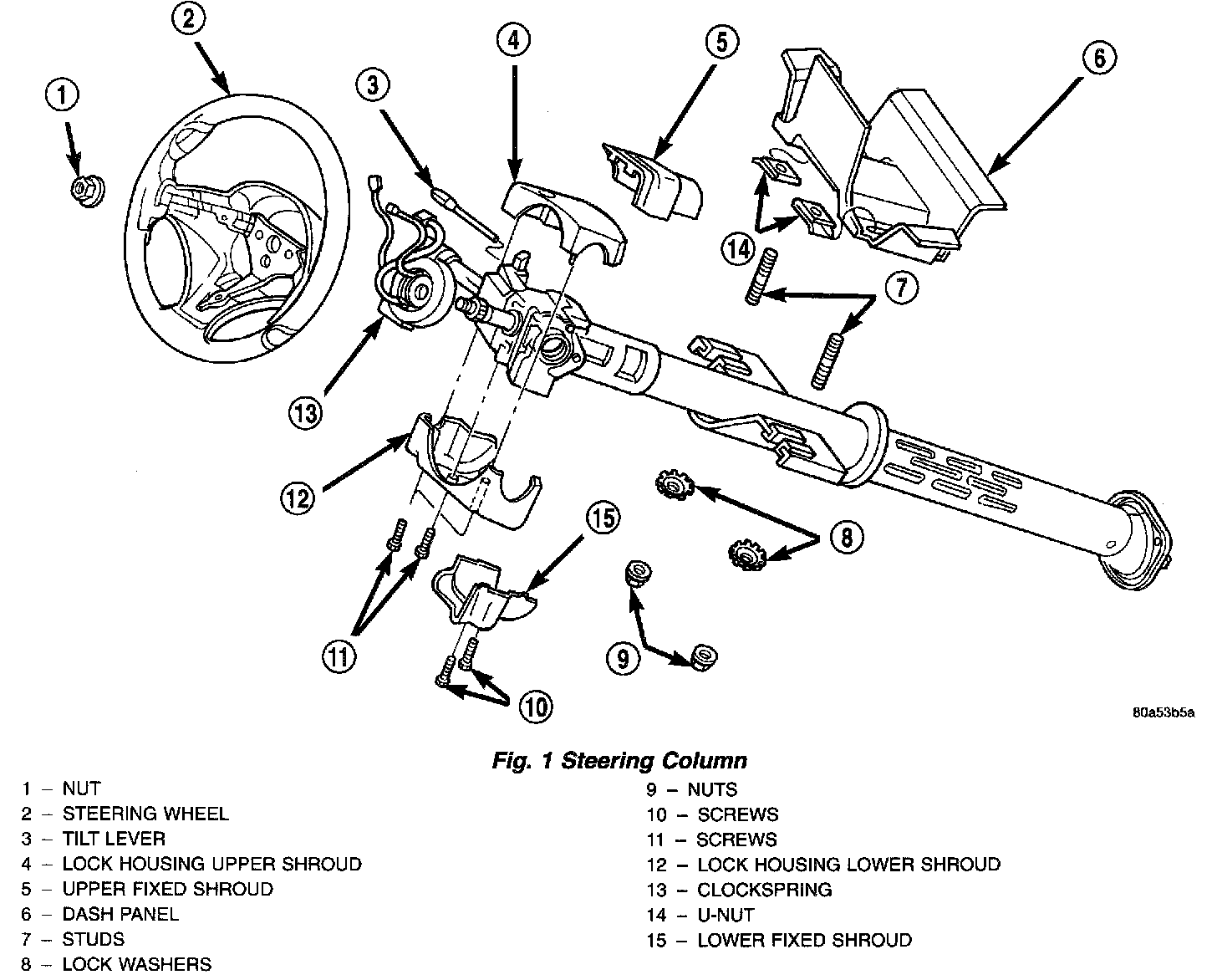 DESCRIPTIONThe steering column used in this vehicle is a multiposition, tilt type steering column. It is manufactured by Daimler Chrysler Corporation.