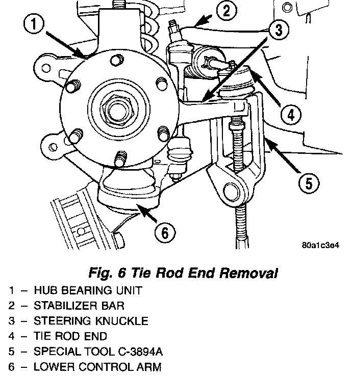 7. Remove both outer tie rod ends from the steering knuckles, using Puller Special Tool C-3894-A.