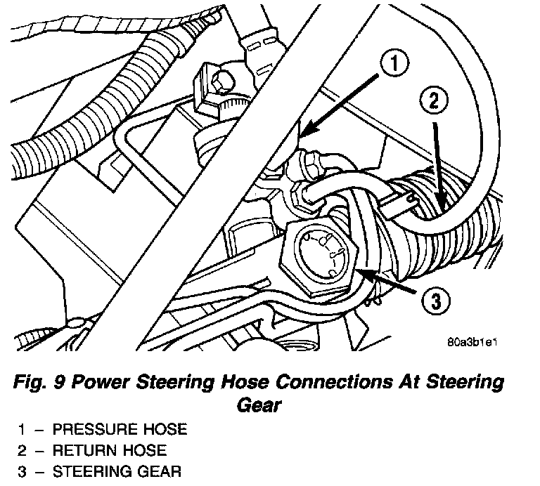 NOTE: When removing hoses from steering gear, remove the return hose fitting from the steering gear do not remove hose from fitting.