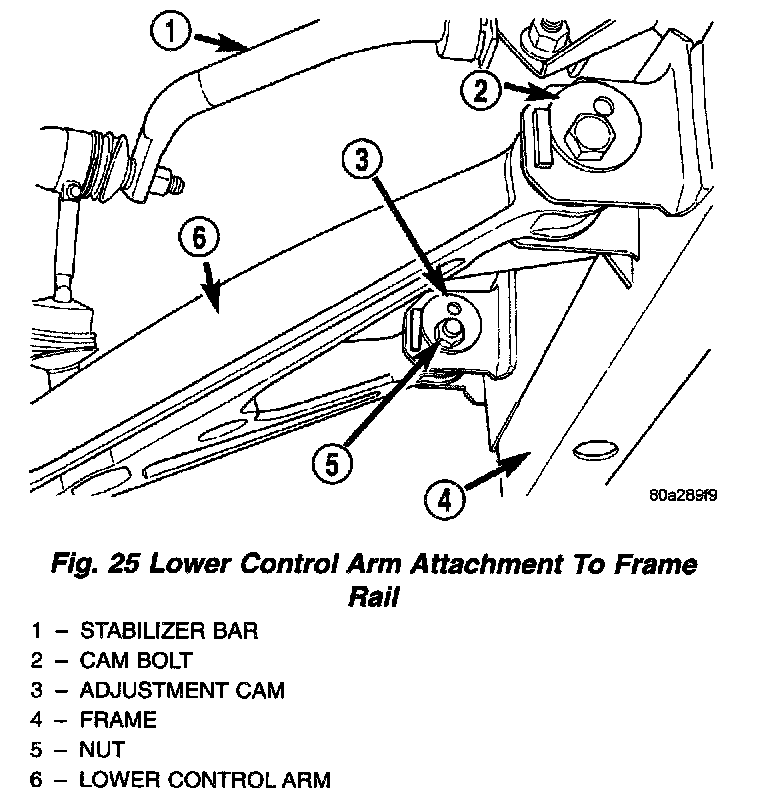 NOTE: Following the wheel alignment, remember to tighten lower control arm cam bolts and nuts to the specified torque of 102 Nm (75 ft. lbs.).
