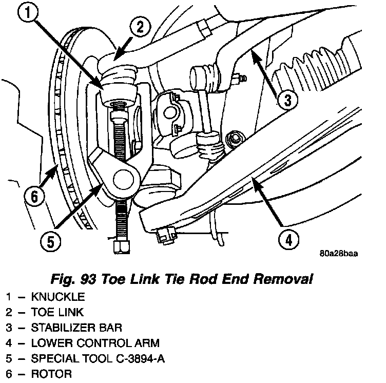 4. Remove the toe link outer tie rod from the knuckle using Puller, Special Tool C-3894A.