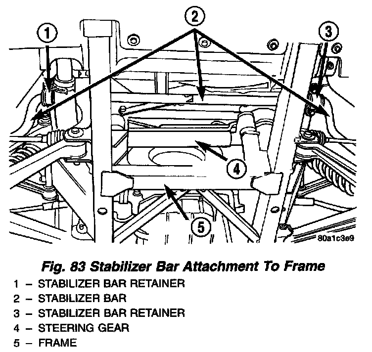 5. Remove the 4 bolts attaching the stabilizer bar retainers to the upper frame rails.