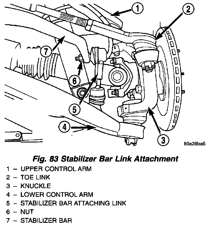 5. Remove the nut mounting the stabilizer bar link to the stabilizer bar.