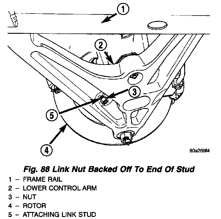 2. Remove the rear wheel and tire from the side of the vehicle requiring link removal.