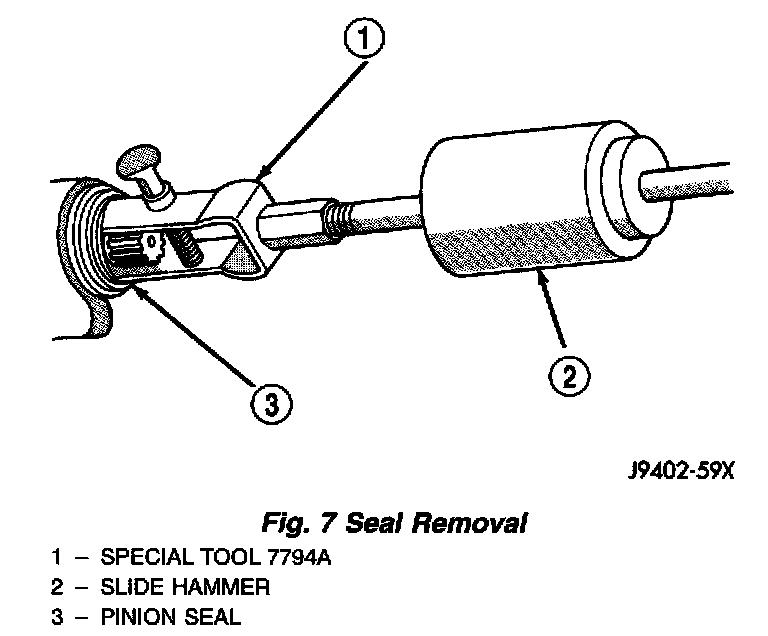 9. Use Remover 7794-A and slide hammer to remove the pinion shaft seal (Fig. 7).