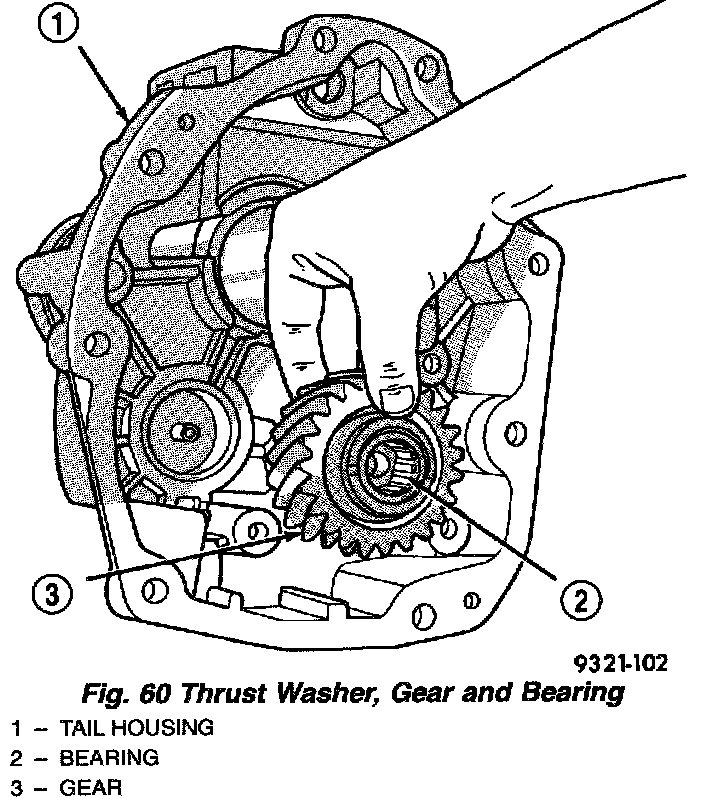 2. Remove thrust washer, gear and bearing (Fig. 60).