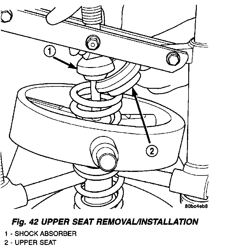 4. Remove the coil spring upper seat. To remove the upper seat, pull up on the shock absorber and remove the seat utilizing the cutout in its side.