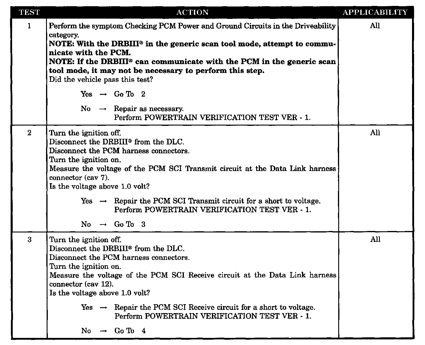 NO RESPONSE FROM PCM (PCM SCI ONLY)