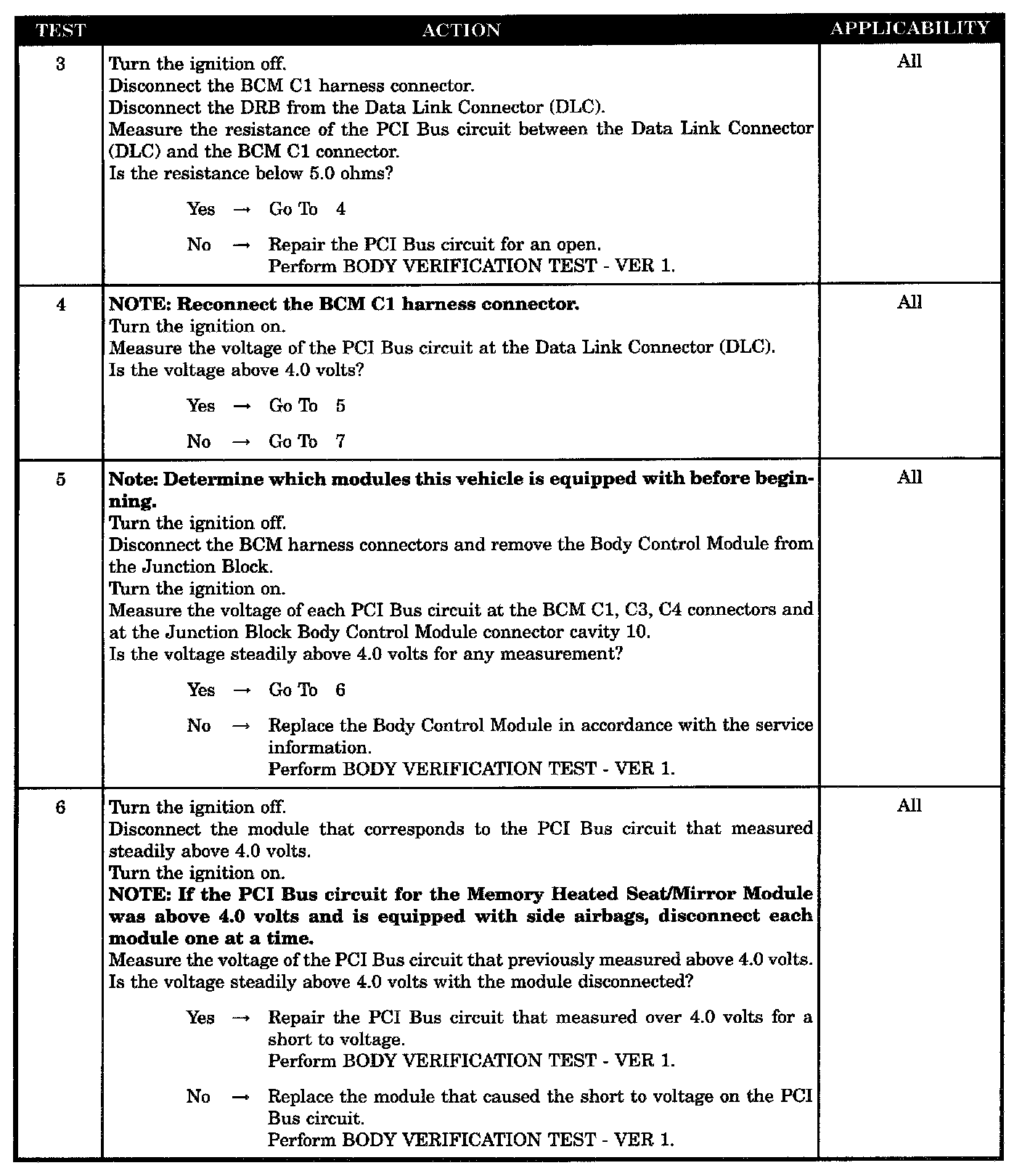 - Low resistance to ground on the PCI bus circuits at the BCM connectors