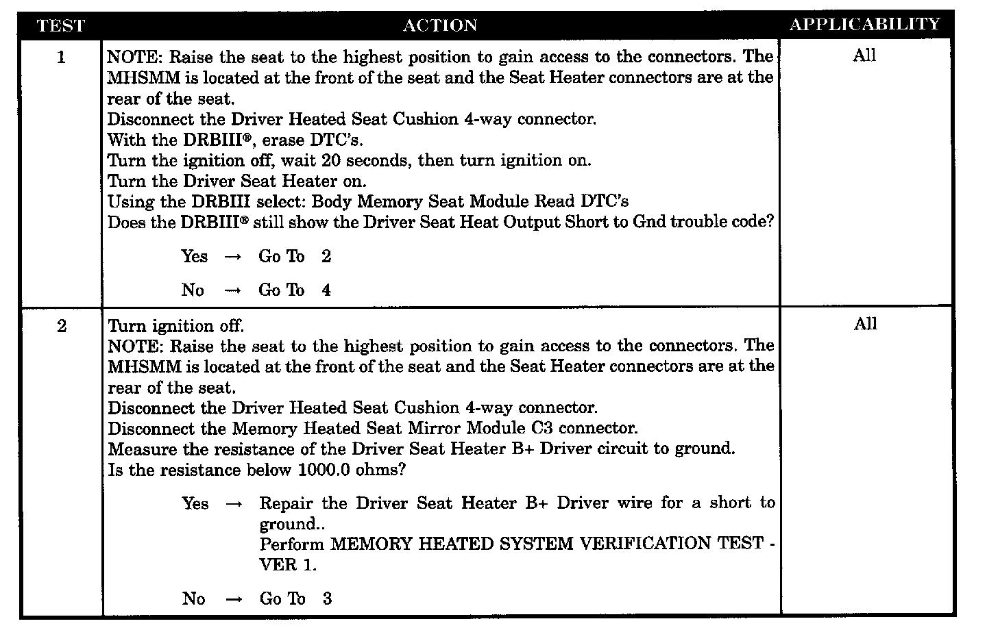 DRIVER SEAT HEAT OUTPUT SHORTED TO GROUND