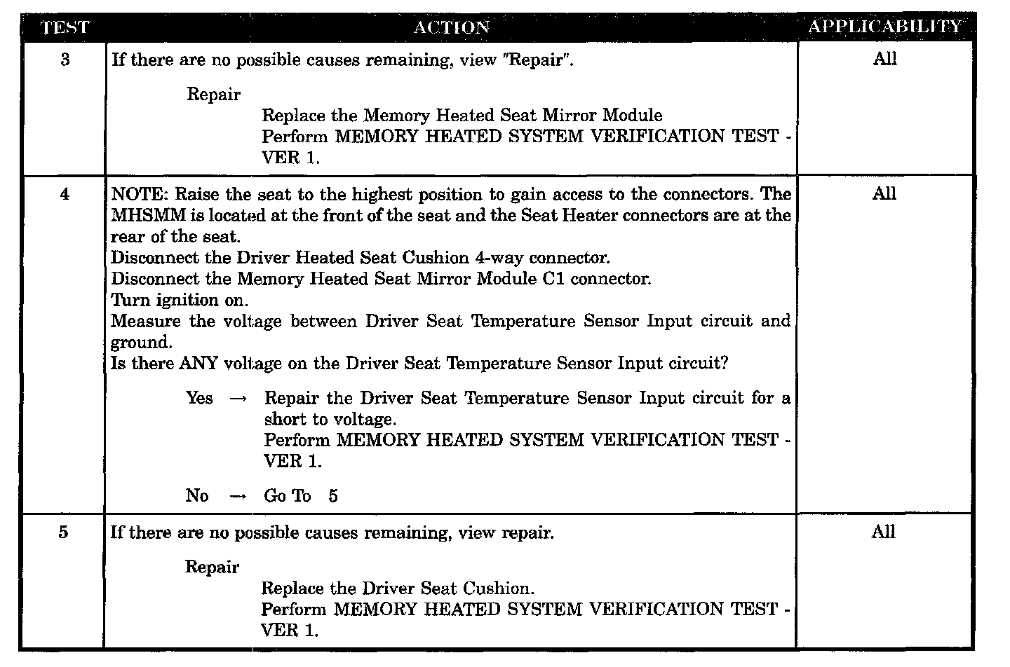 - Driver seat temperature 5 volt supply wire shorted to voltage
