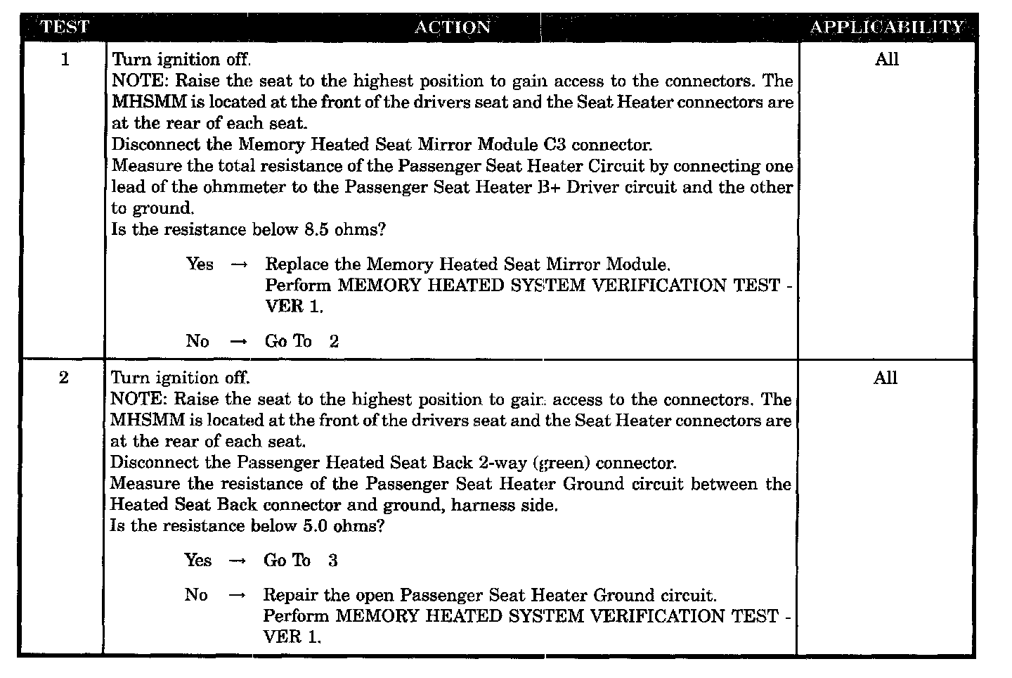 This condition is set immediately after the Memory Heated Seat/Mirror Module loses the seat heat element output.