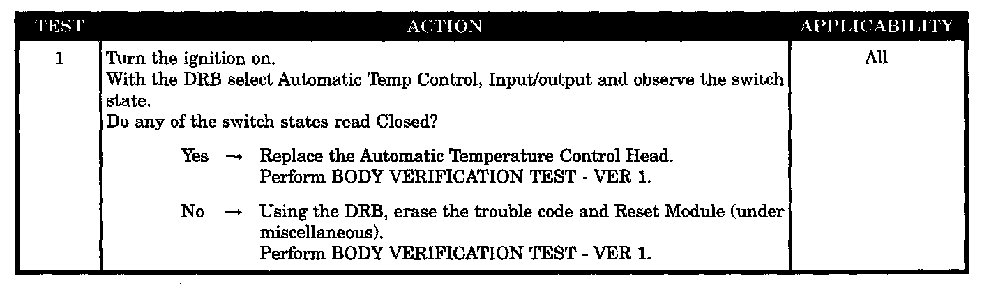 The BCM interfaces with the ATC head over the PCI Bus. If an ATC switch is held in the closed position for longer than 5 to 10 minutes, a switch failed code will be set.