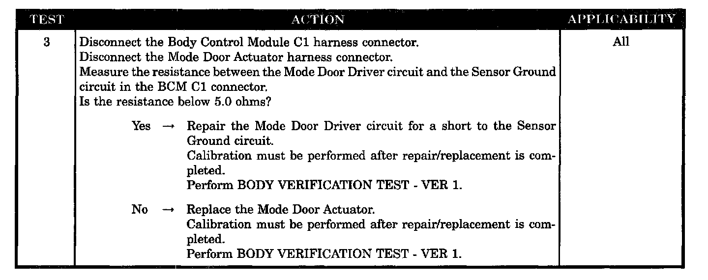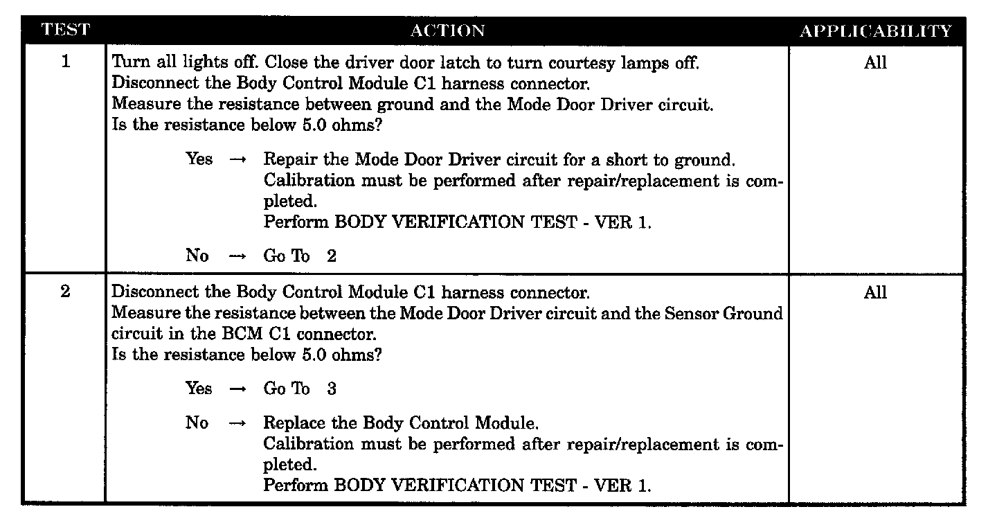 MODE DOOR OUTPUT SHORTED TO GROUND