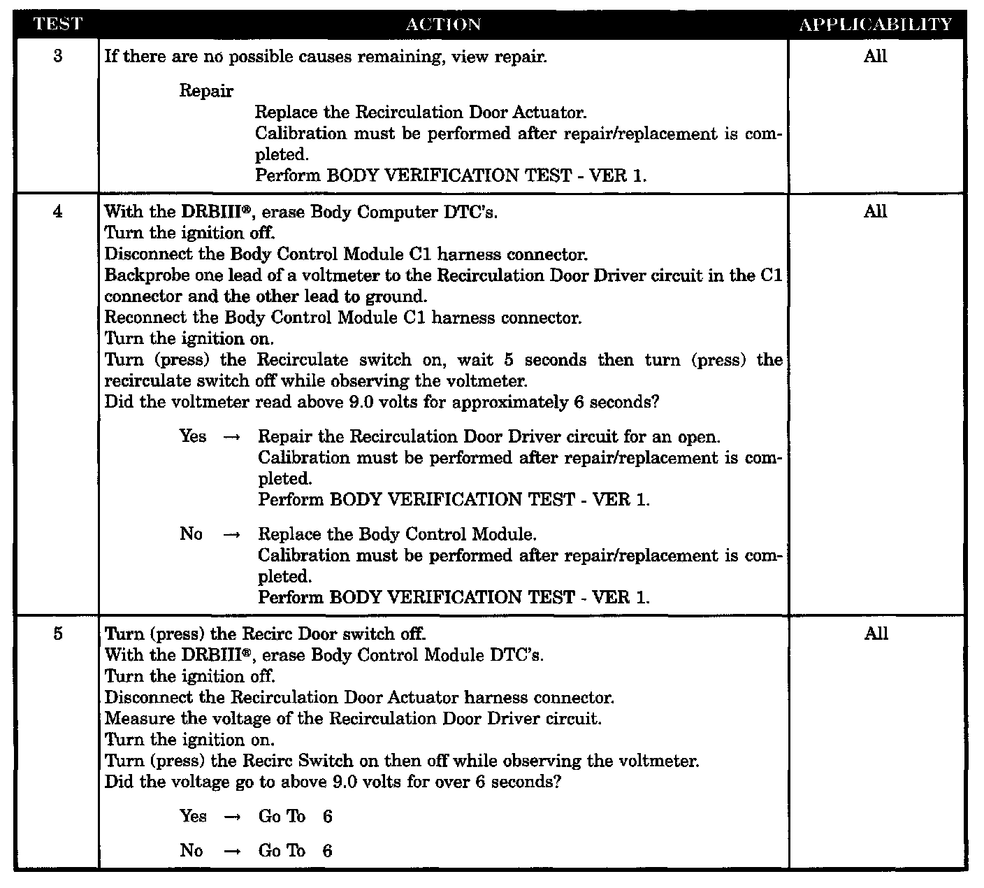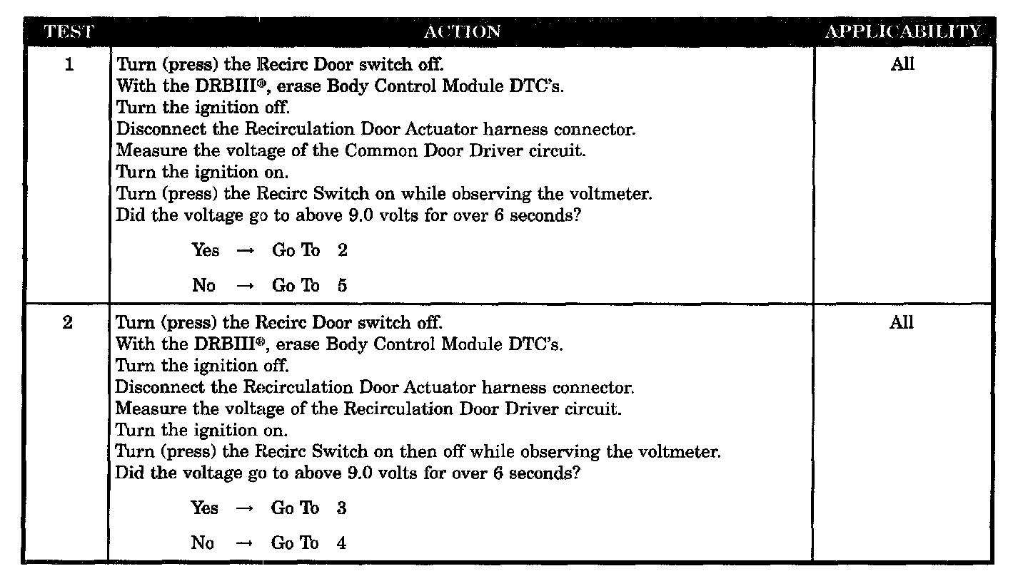 RECIRCULATION DOOR TEST FAILURE (INOPERATIVE OR STALL)