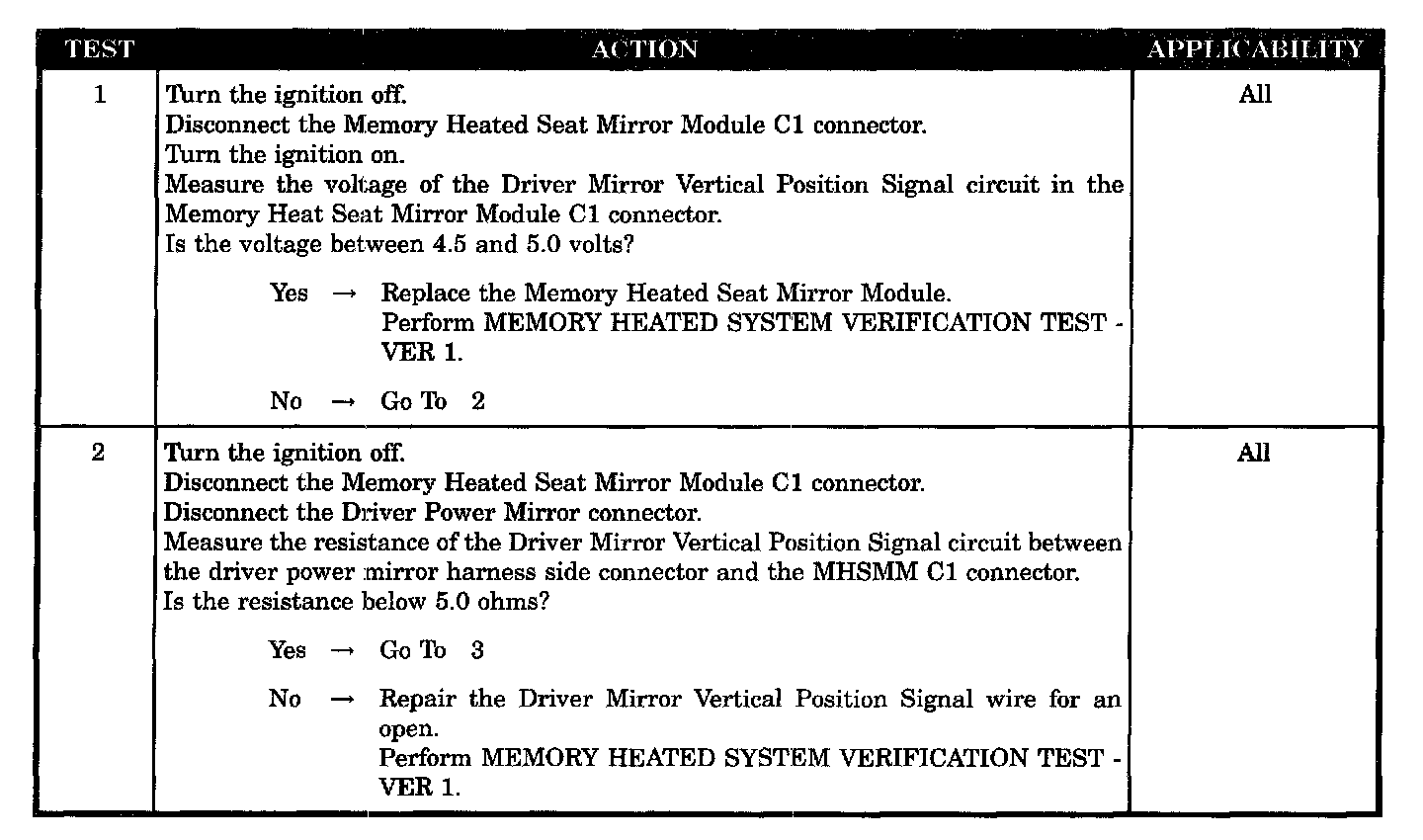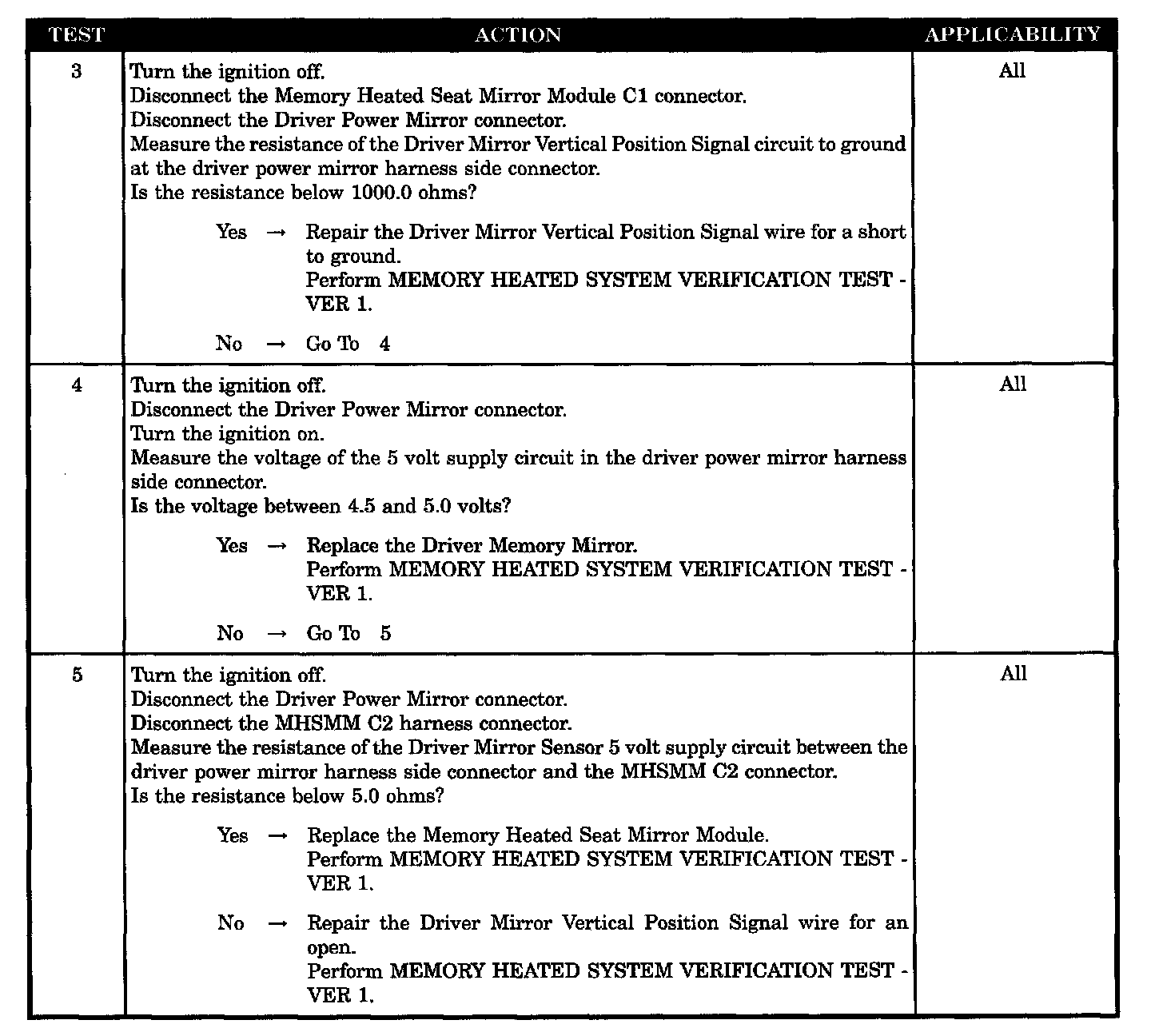 - Driver mirror vertical position signal wire shorted to ground