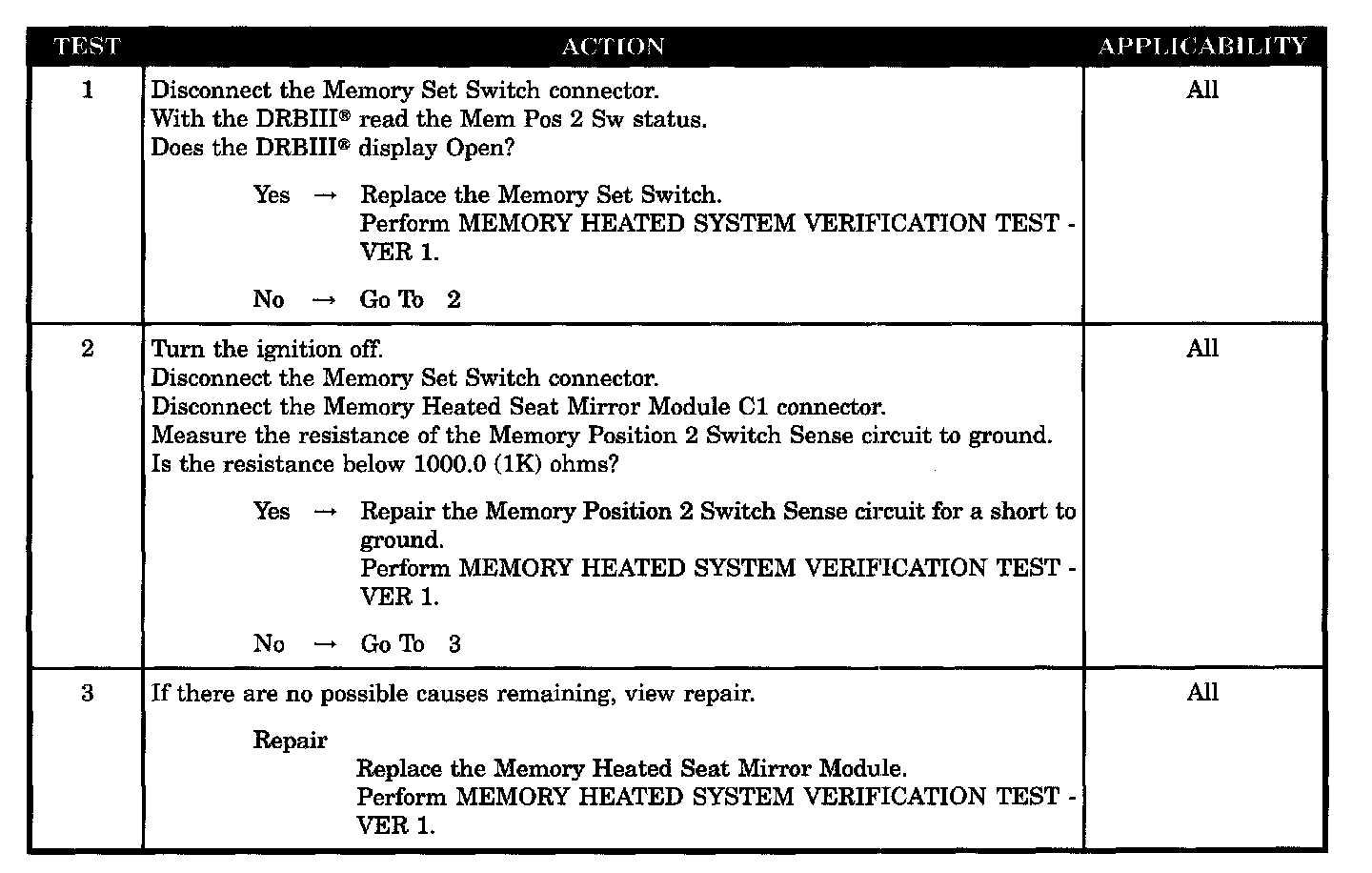 - Memory position 2 switch sense circuit shorted to ground