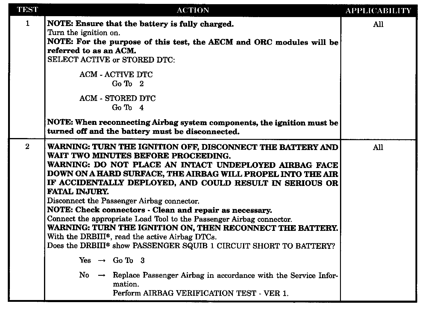 - ACM, Passenger squib 1 circuit shorted to battery