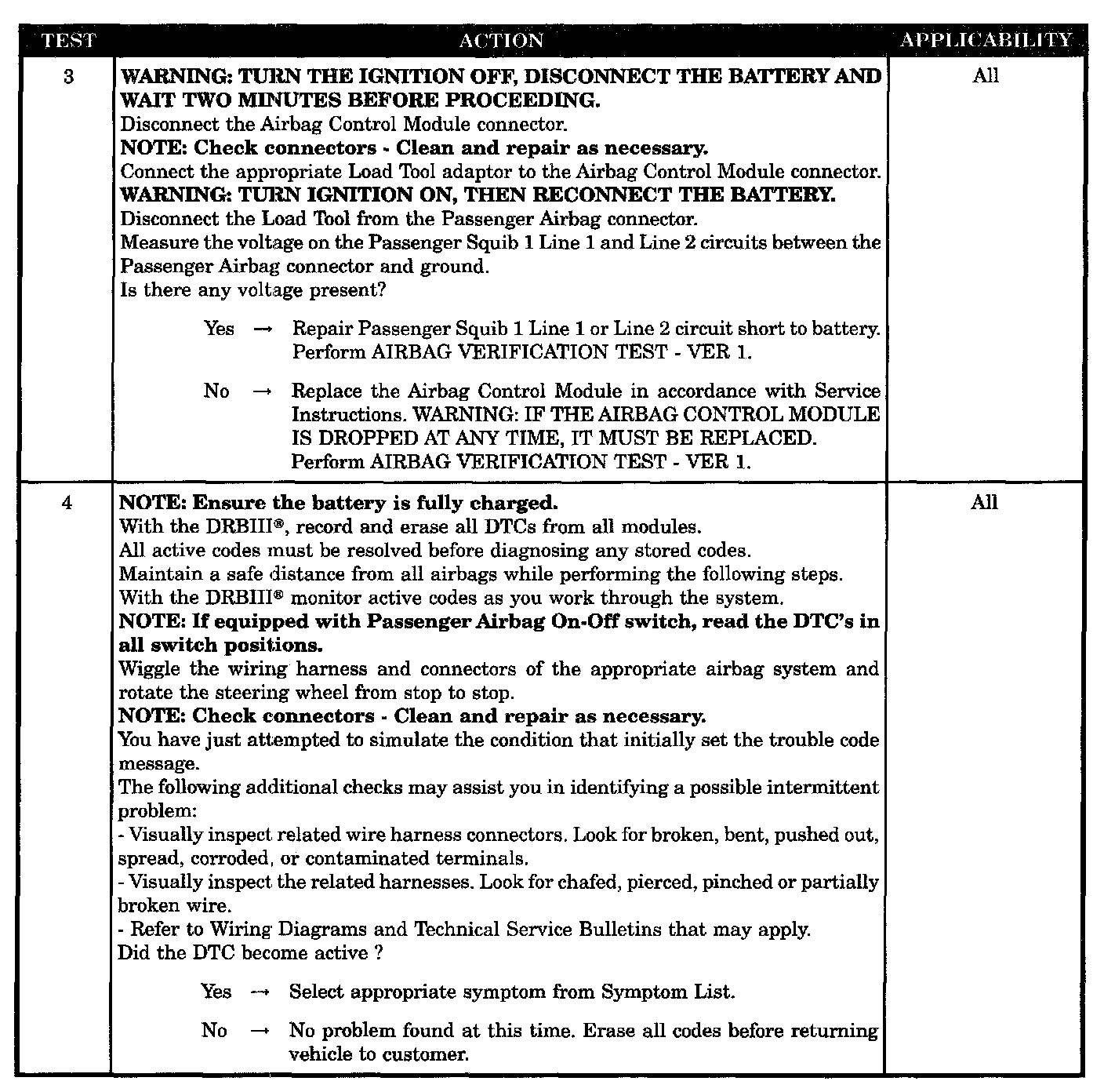 - Passenger airbag circuits shorted to battery