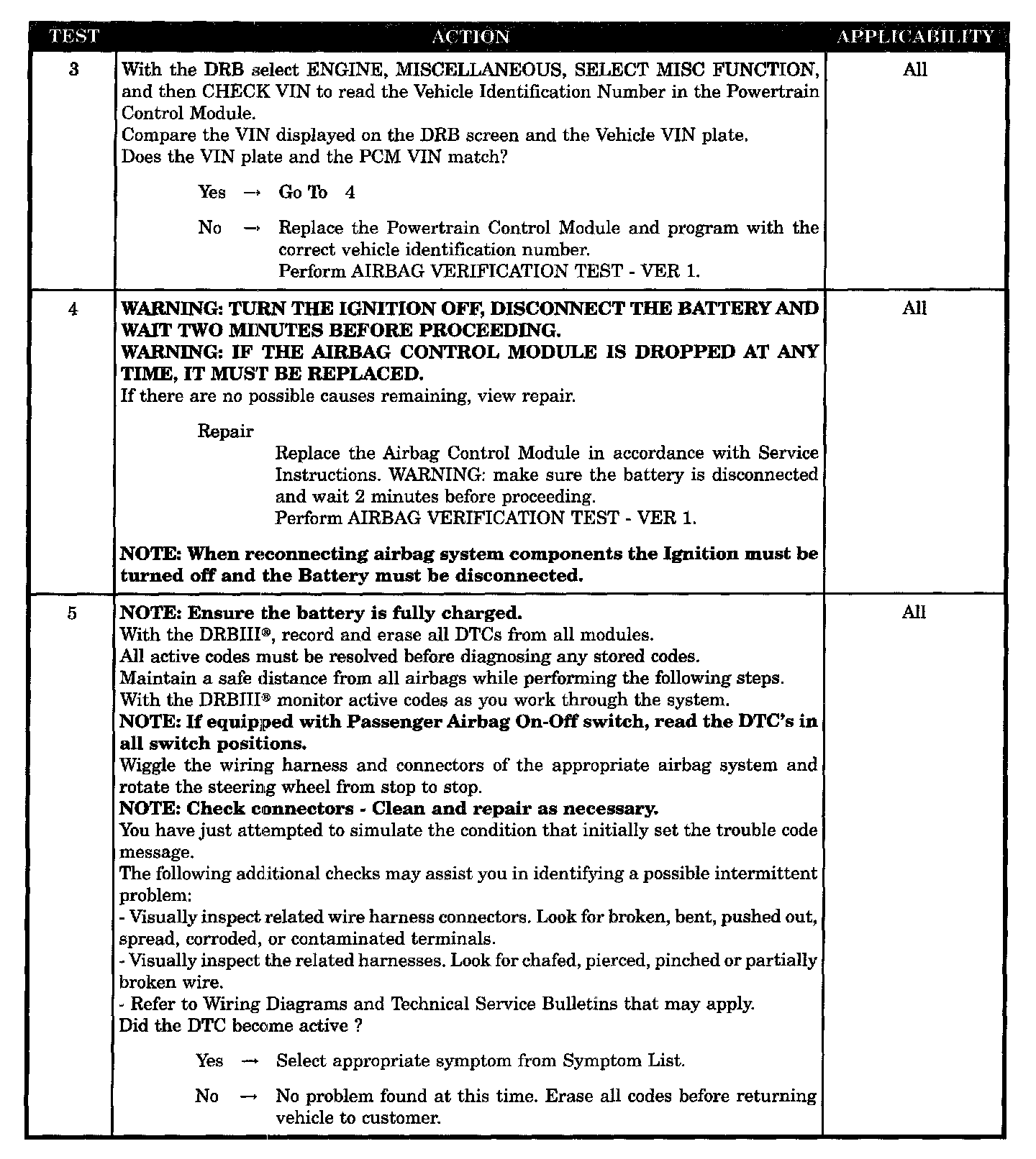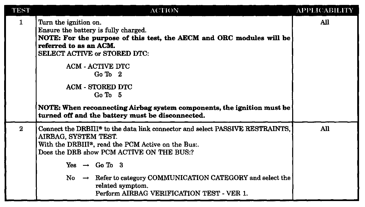 When the ignition is on, the ACM monitors the PCI Bus for the VIN message containing the vehicle body style from the Powertrain Control Module. The PCM transmits the VIN message every 14 seconds.