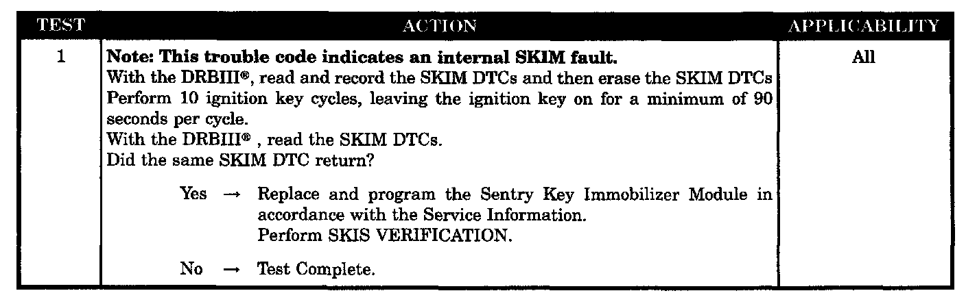 - SKIM internal DTC failure