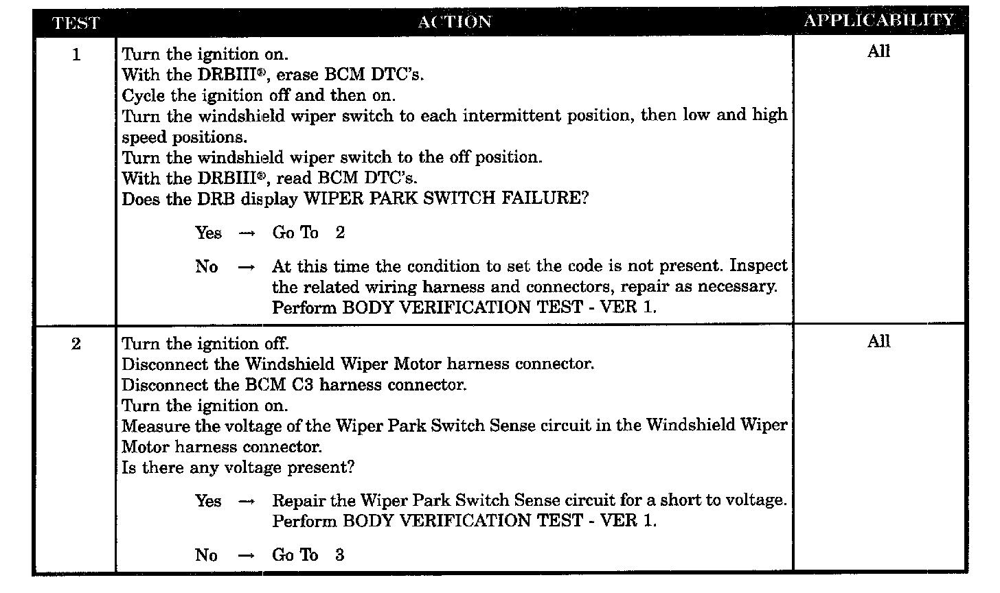 - Wiper park switch sense circuit shorted to ground