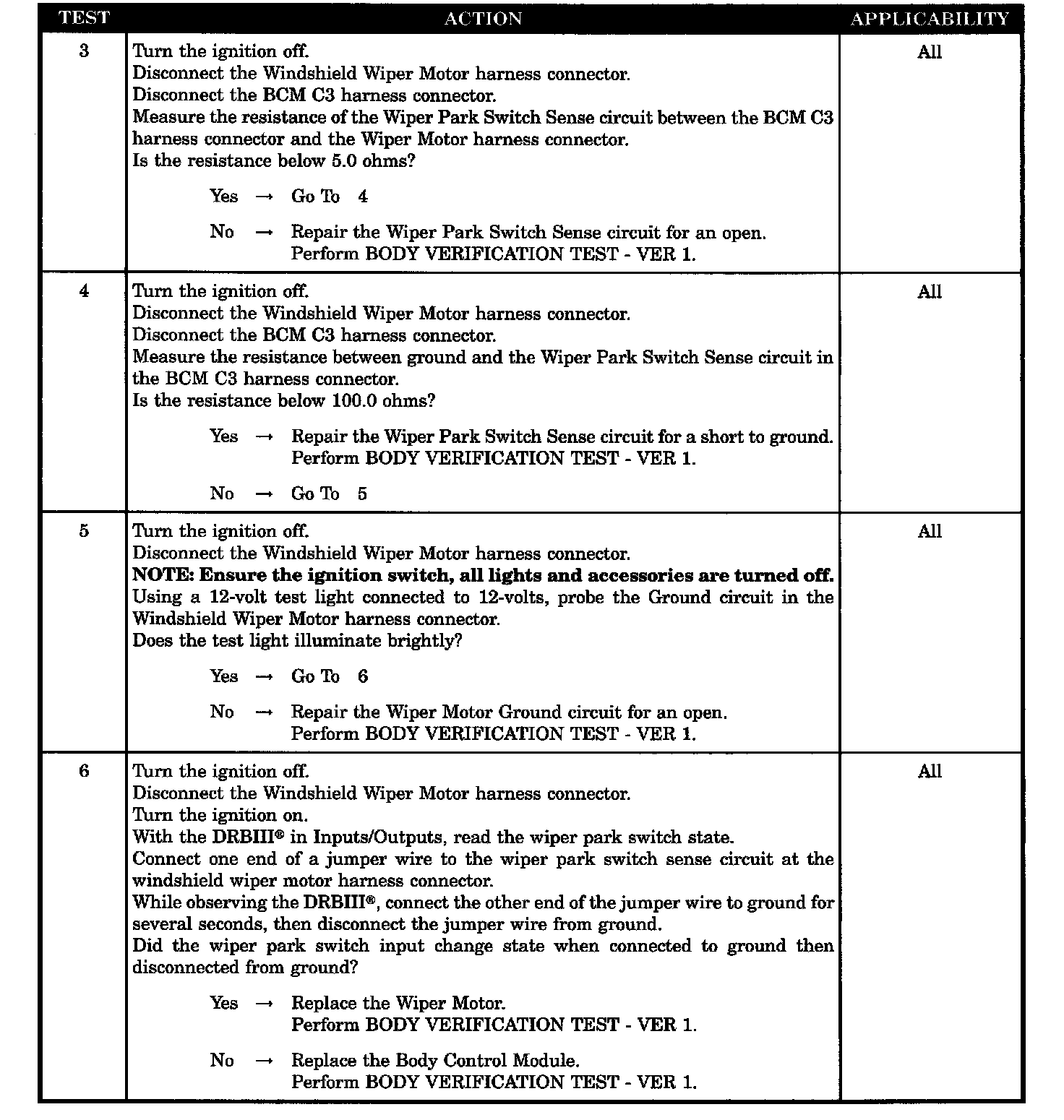 - Wiper park switch sense circuit open